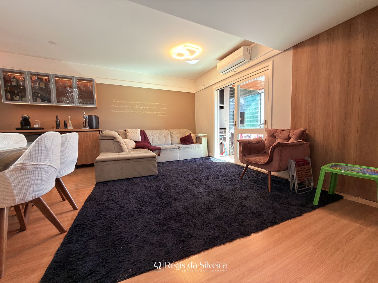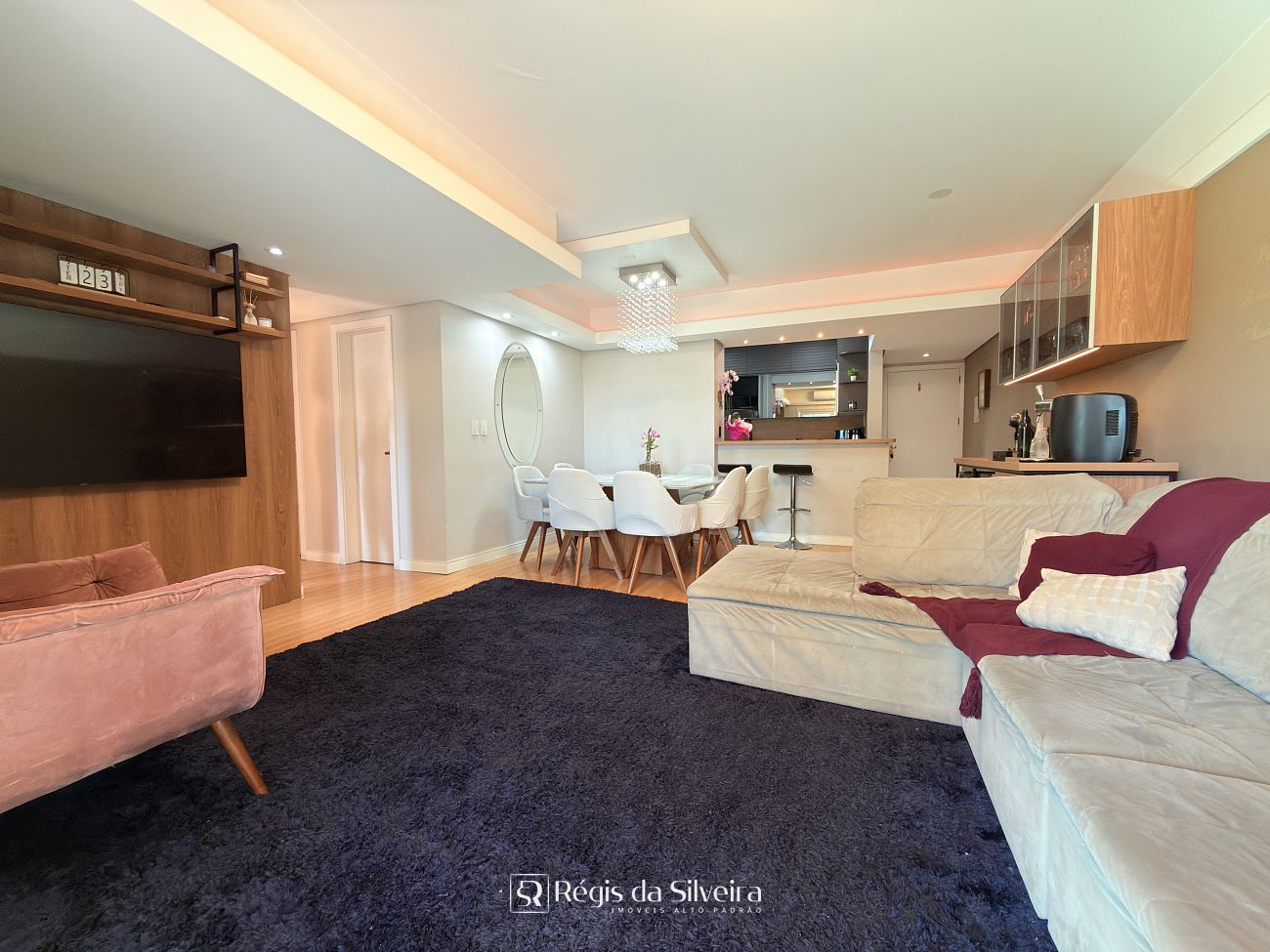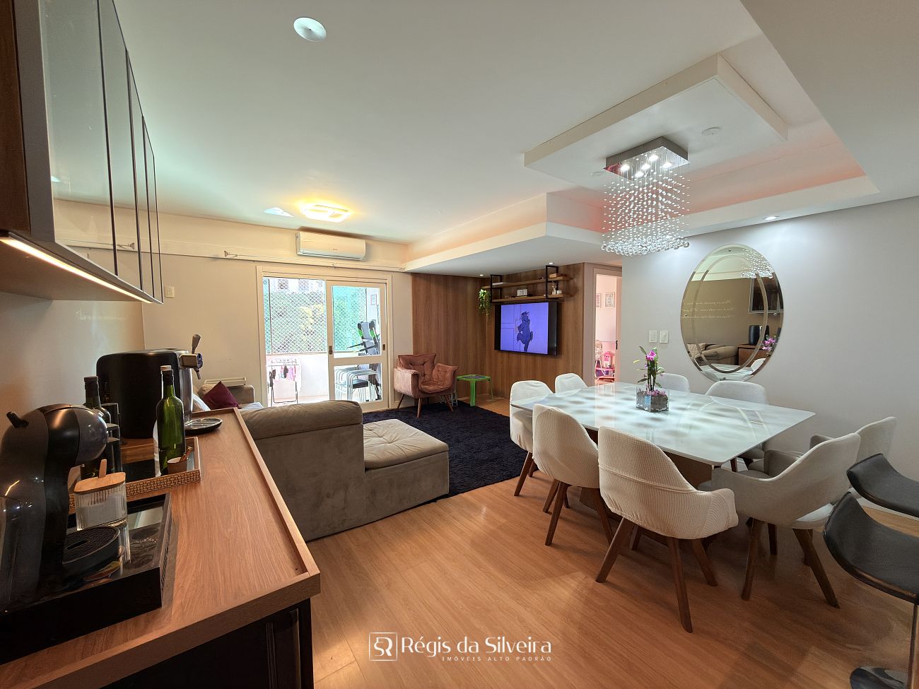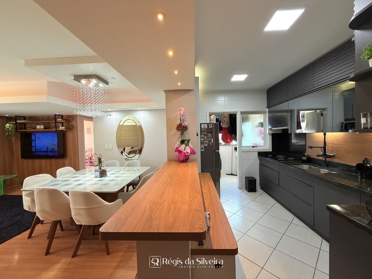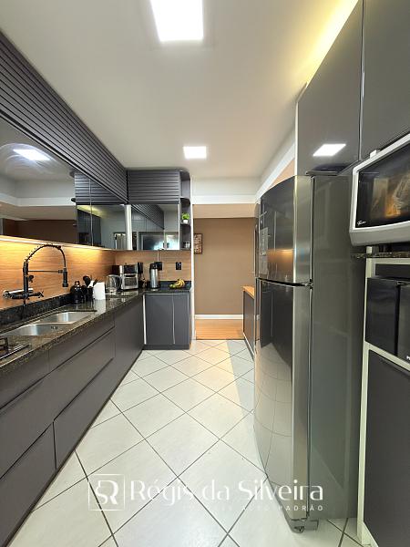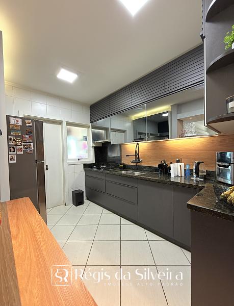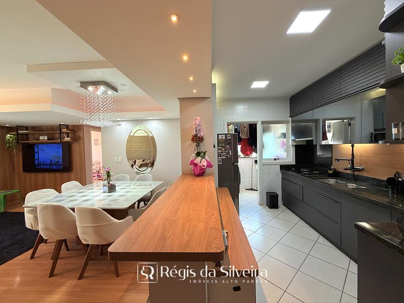 São 03 dorm transformados em 2 dorm sendo 1 suíte, o terceiro dorm foi transformado em closet, banheiro social, ampla sala para 02 ambientes integrada com a cozinha estilo americana, lavanderia, sacada fechada c/ churrasqueira e uma vista panorâmica com um por do sol lindo.
