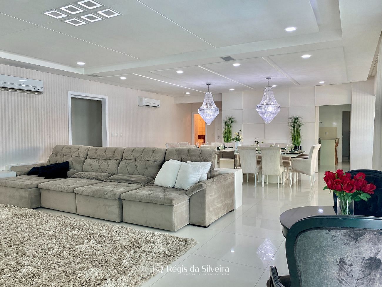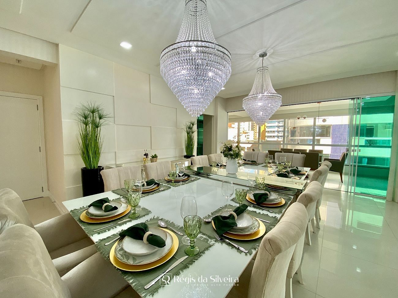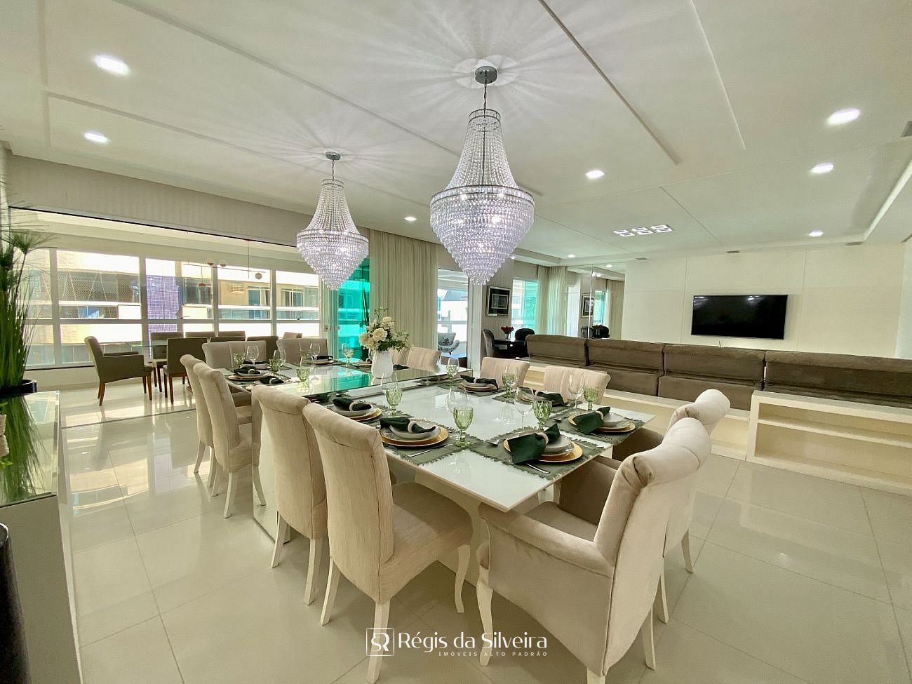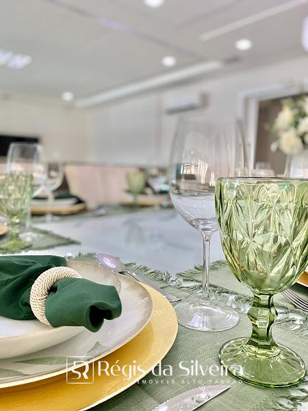 São 04 suítes, sendo do casal com closet, lavabo, sala de estar e jantar, amplo espaço gourmet e churrasqueira, cozinha e lavanderia, tudo bem distribuído em 300 m² privativos de apto. O apto oferece 03 vagas de garagens e uma área de lazer tipo Hoome Club