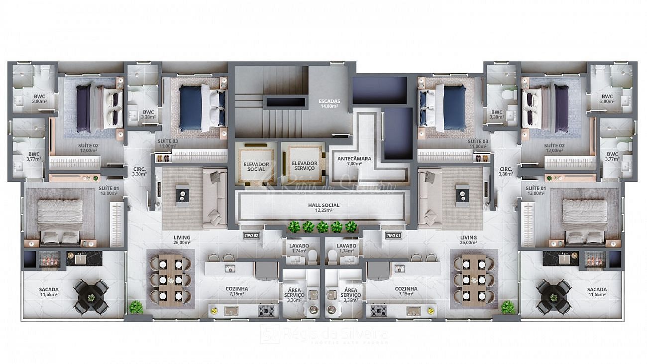 3 dormitórios (3 suítes)