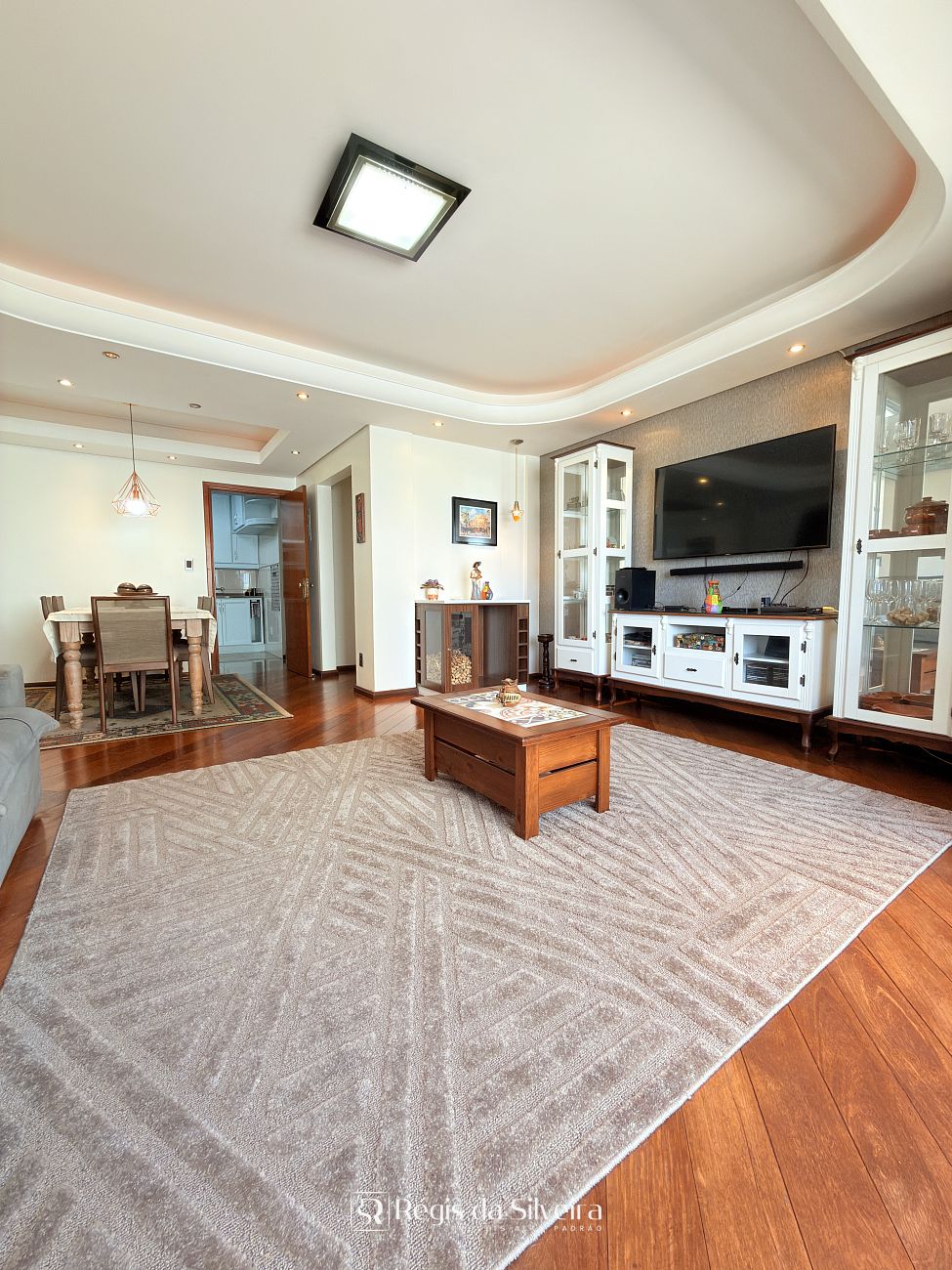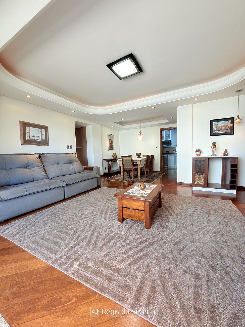 A área social é um dos grandes diferenciais do apartamento. Conta com sala de estar ampla com sacada, ideal para momentos de convivência, além de sala de jantar independente, permitindo ambientes bem definidos e confortáveis para receber familiares e convidados. O imóvel dispõe ainda de entrada social e entrada de serviço, reforçando a funcionalidade da planta.