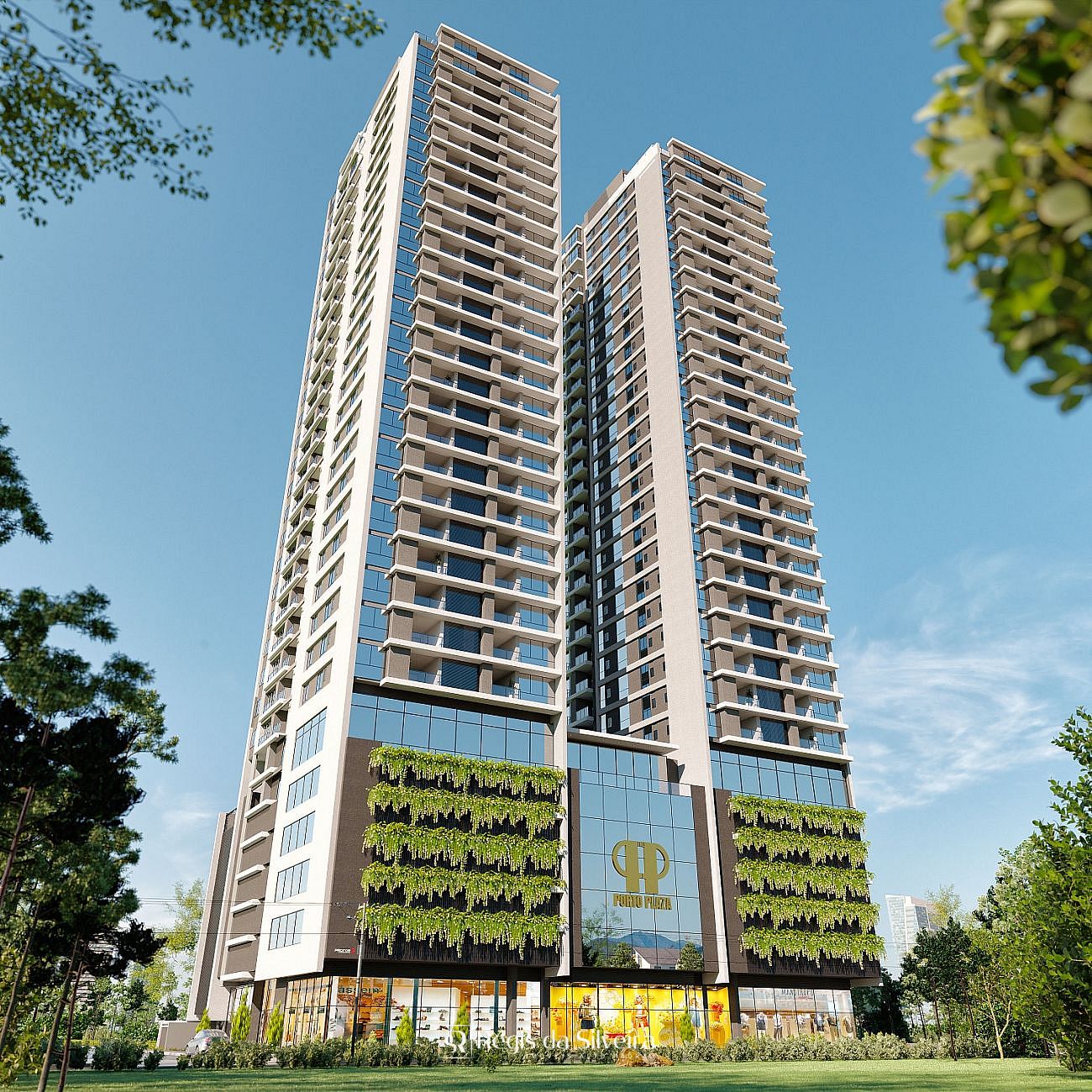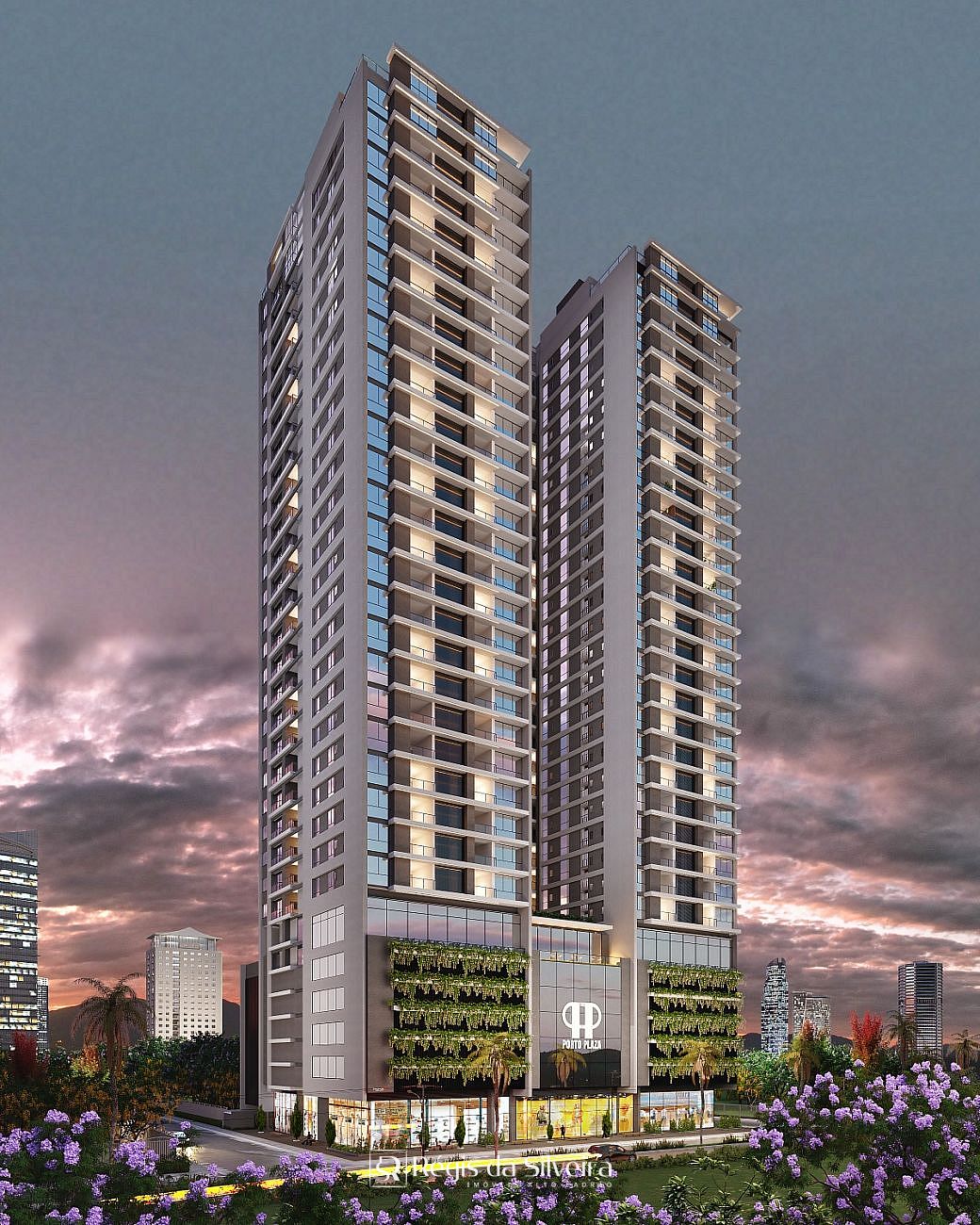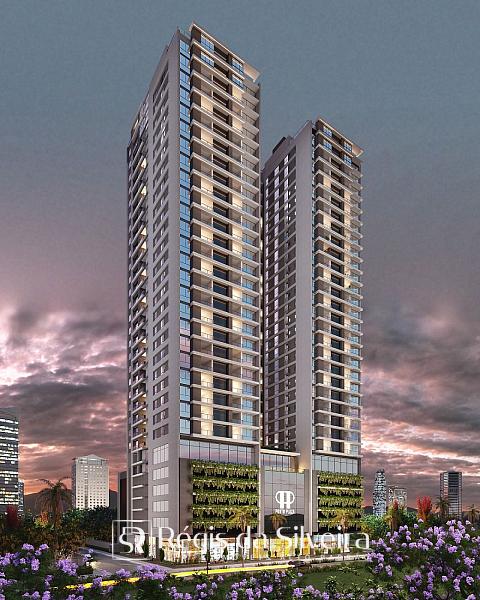 Serão 02 torres com 04 aptos por andar todos com 03 suítes e 02 vagas de garagem com metragens de 118,27m² a 124,96m².