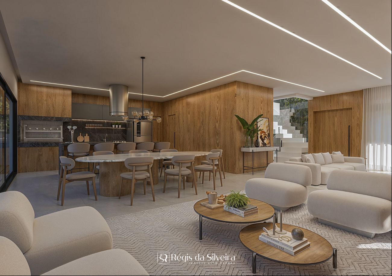 Ambientes integrados: estar social, jantar e cozinha
