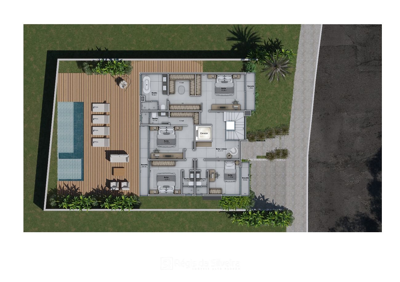 5 suítes (incluindo suíte master com hidromassagem e uma suíte térrea)